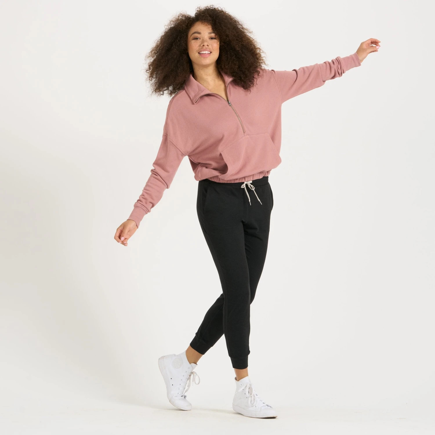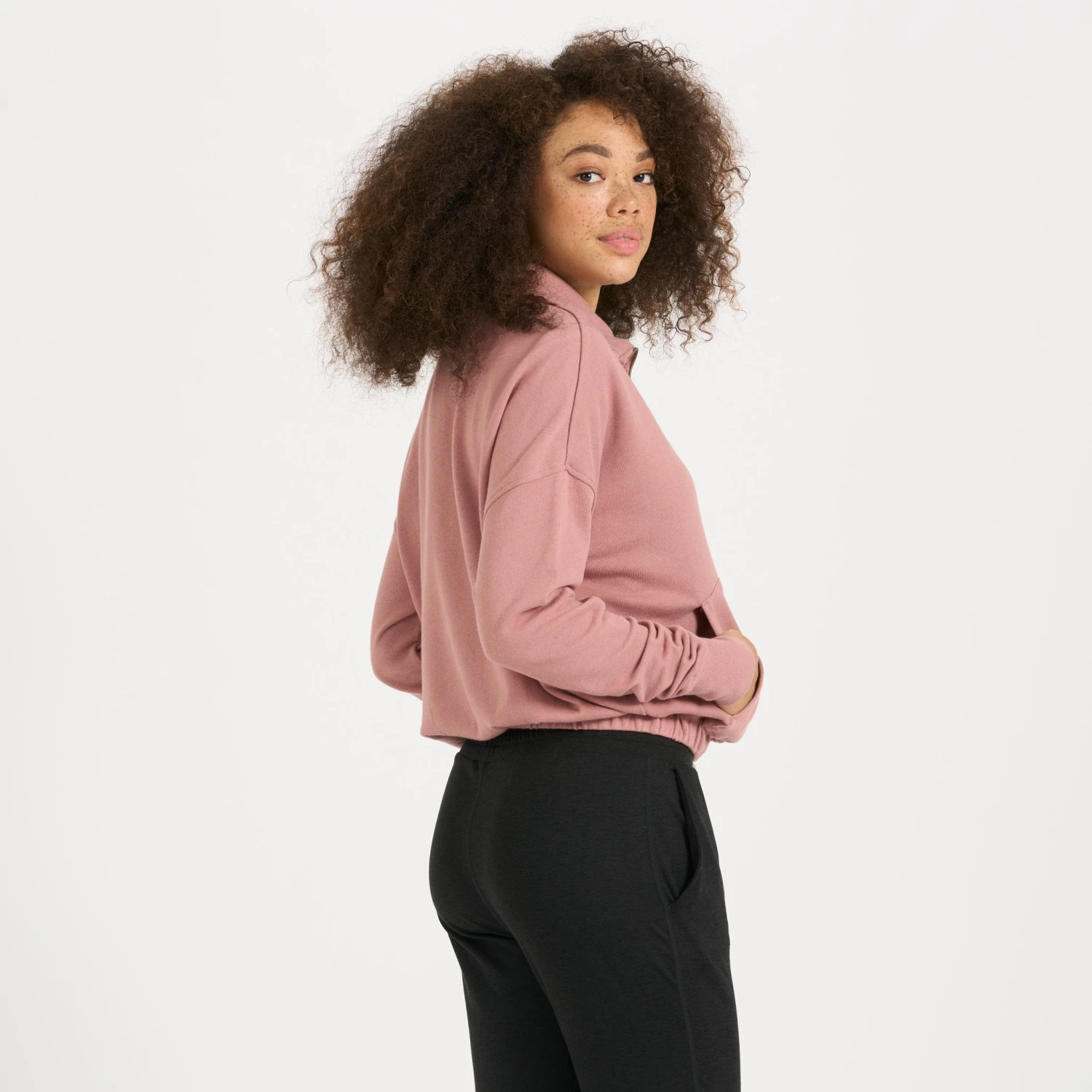 This Sunnyside Half Zip is easy to love, with its soft, organic French terry construction, pullover style, and relaxed fit. This half zip features an elastic hem and ribbed cuffs and a convenient kangaroo pocket. Great for lounging.